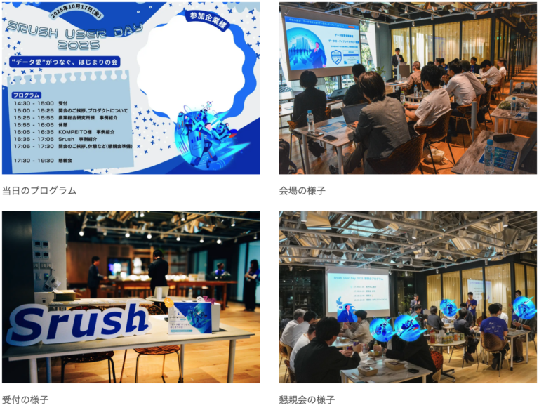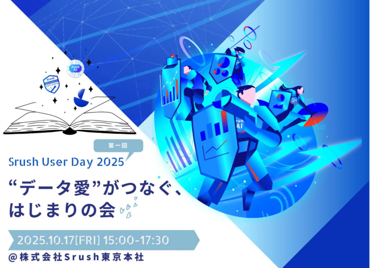 株式会社Srushは2025年10月17日、データへの“愛”を持つ仲間たちが集い、実践の工夫や気づきを自由に語り合う「Srush User Day 2025〜“データ愛”がつなぐ、はじまりの会〜」を開催しました。併せて「Data Guardians of Japan 2025」も実施し、データ活用を文化として根づかせる取り組みを称えました。会場では、データに携わる多くの方々が自然と話題を交わし合い、互いの学びが広がっていく時間が生まれました。