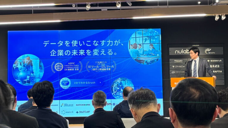 この度は、栄えある賞を賜り、誠にありがとうございます。 私たちは、「データドリブンジャパン」というビジョンを掲げています。 100万人のデータガーディアンが活躍し、誰もがデータを使いこなし、一人ひとりが日本の飛躍的な経済成長を支える力となる。そんな未来を実現することが、私たちの使命です。 私自身、新卒で大企業に入社し、長らく大企業向けビジネスに携わってまいりました。しかし、社会構造の変化やコロナ禍を経て、日本経済の停滞を肌で感じる中で、強く思うようになったことがあります。 現在の市場には大企業向けサービスが数多く存在する一方で、日本企業の99.7%を占める中堅・中小企業の皆様に本気で寄り添うサービスは、まだ十分とは言えません。日本経済は、地方を支える中堅・中小企業の皆様によって成り立っています。そして、地方企業がデータを活用し成長することこそが、日本全体の復興と発展につながると、私たちは確信しています。 だからこそ私たちは、壮大なDXの掛け声だけではなく、現場で日々皆様を悩ませている「Excel集計」といった身近な業務課題の解決から伴走します。 データを“特別なもの”にするのではなく、“誰もが使いこなせる武器”にする。その積み重ねこそが、データドリブンジャパンへの確かな一歩だと考えています。 本日会場に来られなかった弊社メンバーも、今この瞬間も地方での展示会や出張など、全国各地で奔走しております。 「地方の中堅・中小企業のDX・AI活用といえばSrush」と言っていただける存在を目指し、そして日本全国の企業がデータを活用して成長する社会の実現に向けて、全社一丸となって尽力してまいります。引き続き、ご支援、ご指導のほどよろしくお願い申し上げます。